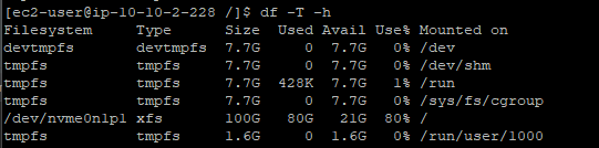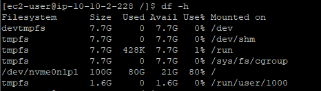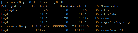 df명령어는 파일 시스템의 디스크 사용량을 표시합니다.