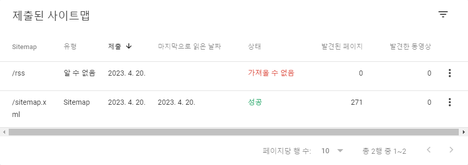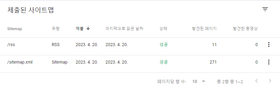 사이트맵의 상태가 성공으로 바뀐 것을 볼 수 있습니다.