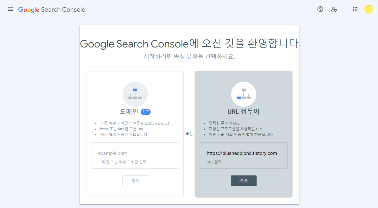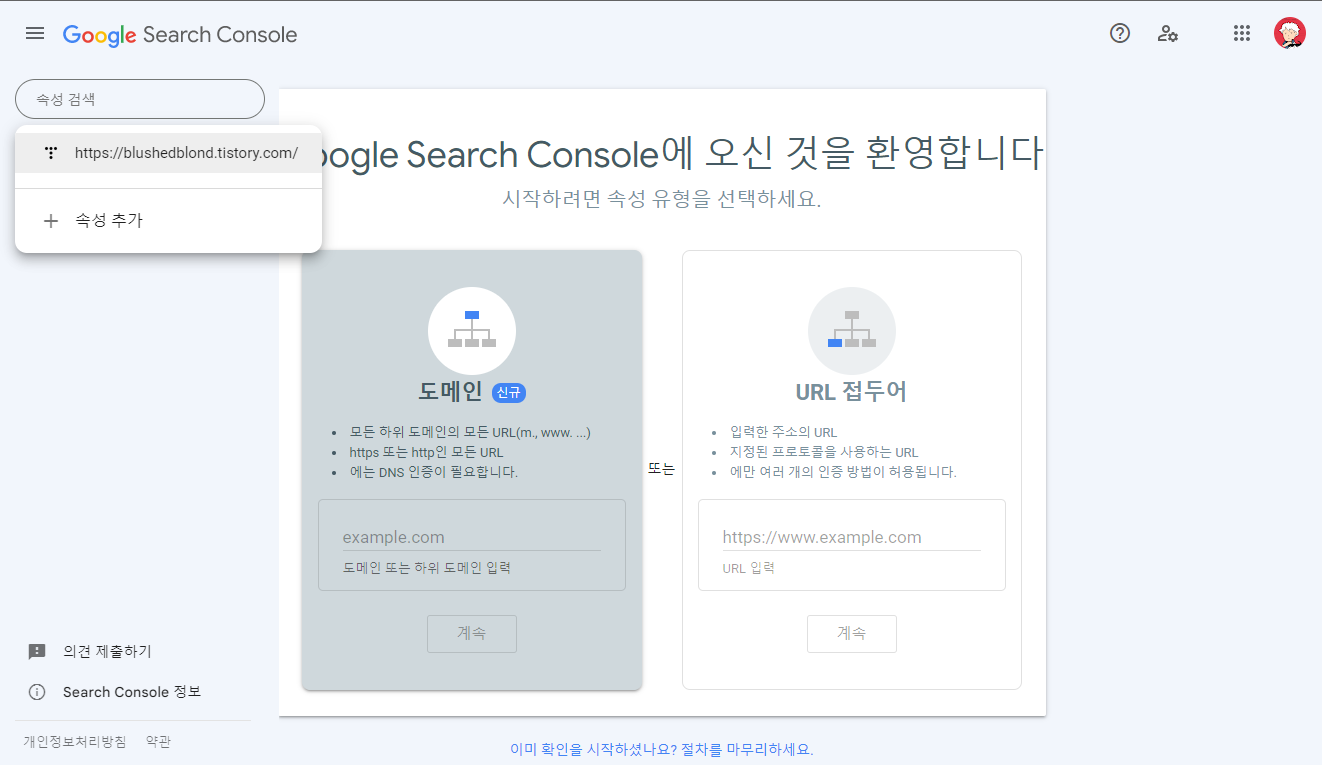 구글 서치 콘솔에 티스토리 블로그 등록하기