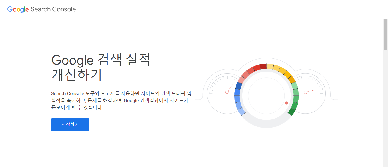 먼저 구글 서치 콘솔 홈페이지에 접속합니다.