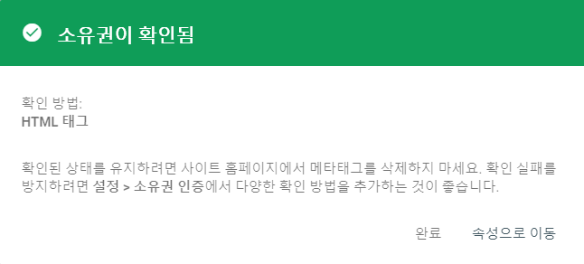 사이트 소유권을 확인해줘야 합니다.