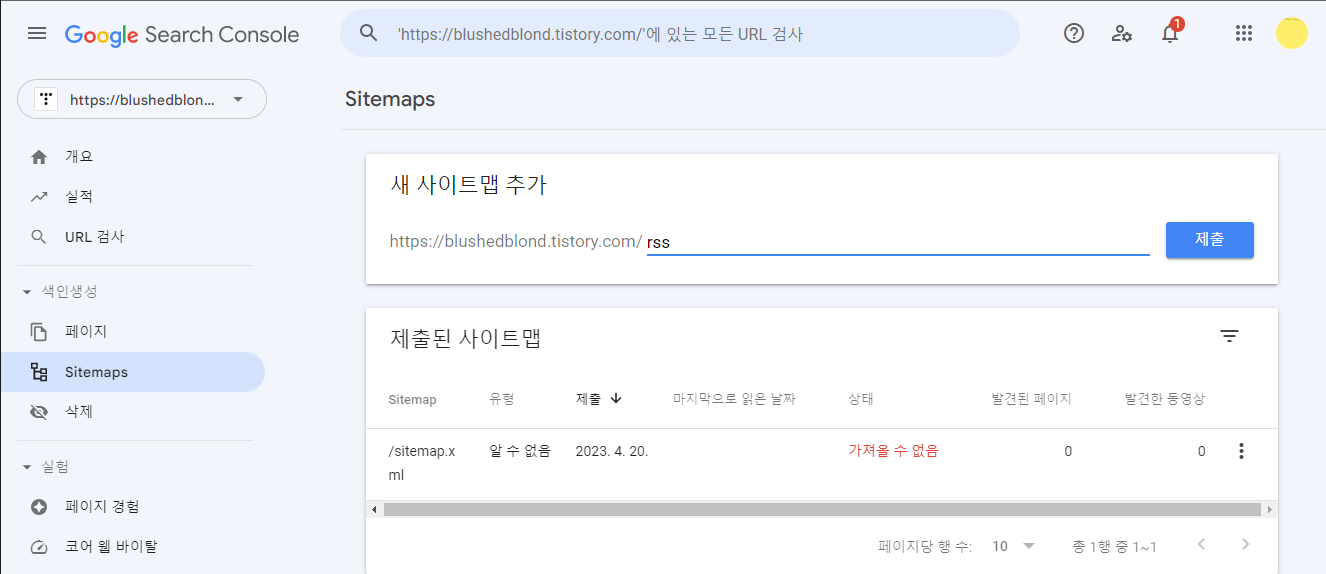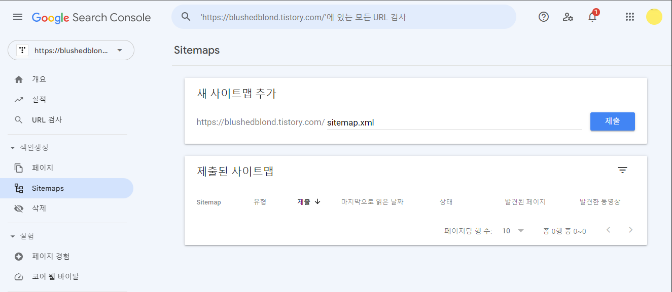 이제 구글 서치 콘솔에 티스토리 블로그가 성공적으로 등록됐습니다.