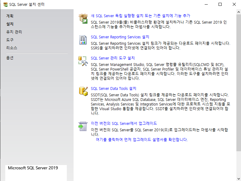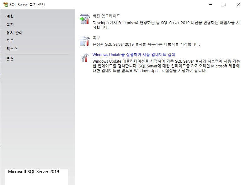 기존에 설치된 인스턴스에 아까 설치되지 않은 클라이언트 도구 연결 관리자 등을 다시 설치해보려 합니다.