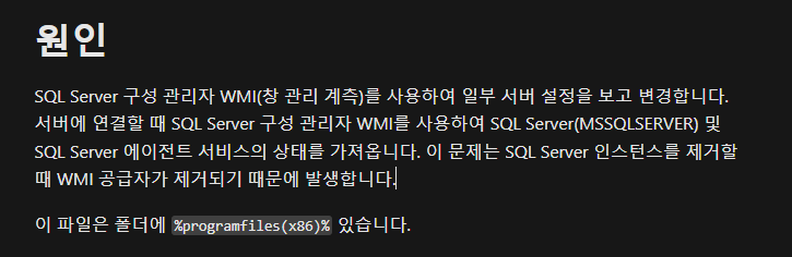 SQL Server 서버 구성 관리자를 열면 아래와 같은 오류 메시지가 표시되는데 해당메시지를 검색해보았습니다.